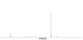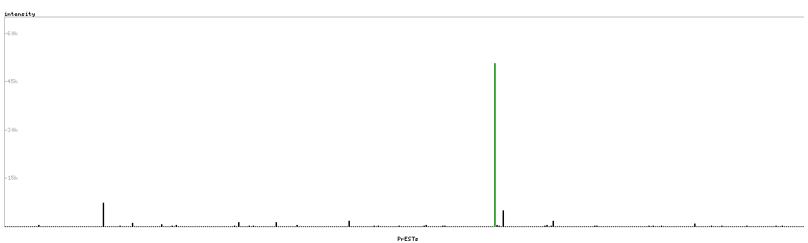 At the top of the view, the position of the antigen (identified by the corresponding HPA identifier) is shown as a green bar. A yellow triangle on the bar indicates a <100% sequence identity to the protein target.