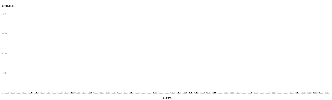 At the top of the view, the position of the antigen (identified by the corresponding HPA identifier) is shown as a green bar. A yellow triangle on the bar indicates a <100% sequence identity to the protein target.