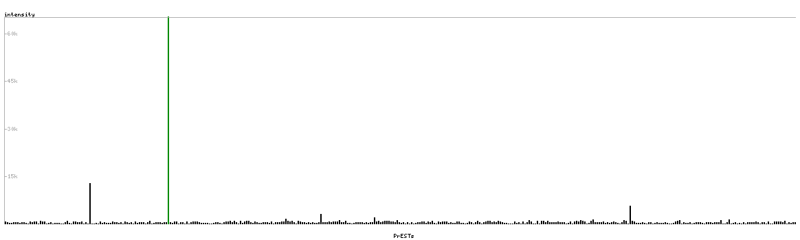 At the top of the view, the position of the antigen (identified by the corresponding HPA identifier) is shown as a green bar. A yellow triangle on the bar indicates a <100% sequence identity to the protein target.