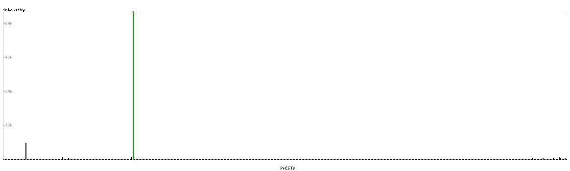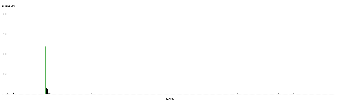 At the top of the view, the position of the antigen (identified by the corresponding HPA identifier) is shown as a green bar. A yellow triangle on the bar indicates a <100% sequence identity to the protein target.