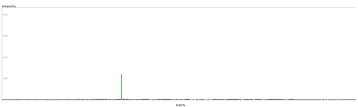At the top of the view, the position of the antigen (identified by the corresponding HPA identifier) is shown as a green bar. A yellow triangle on the bar indicates a <100% sequence identity to the protein target.