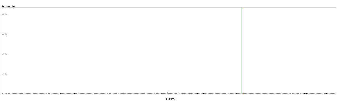 At the top of the view, the position of the antigen (identified by the corresponding HPA identifier) is shown as a green bar. A yellow triangle on the bar indicates a <100% sequence identity to the protein target.