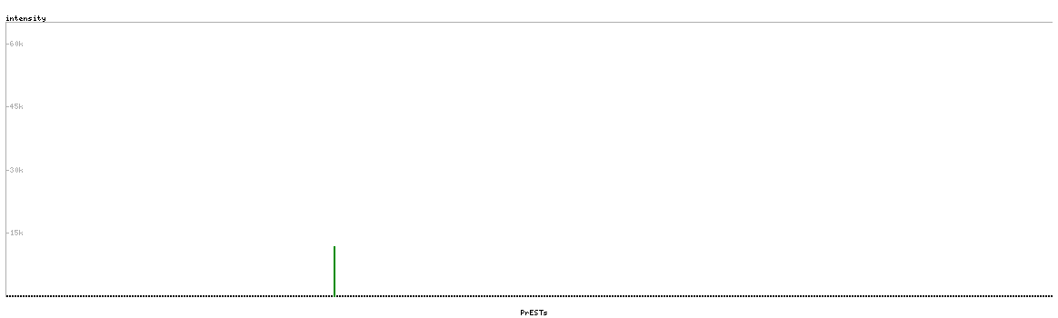 At the top of the view, the position of the antigen (identified by the corresponding HPA identifier) is shown as a green bar. A yellow triangle on the bar indicates a <100% sequence identity to the protein target.