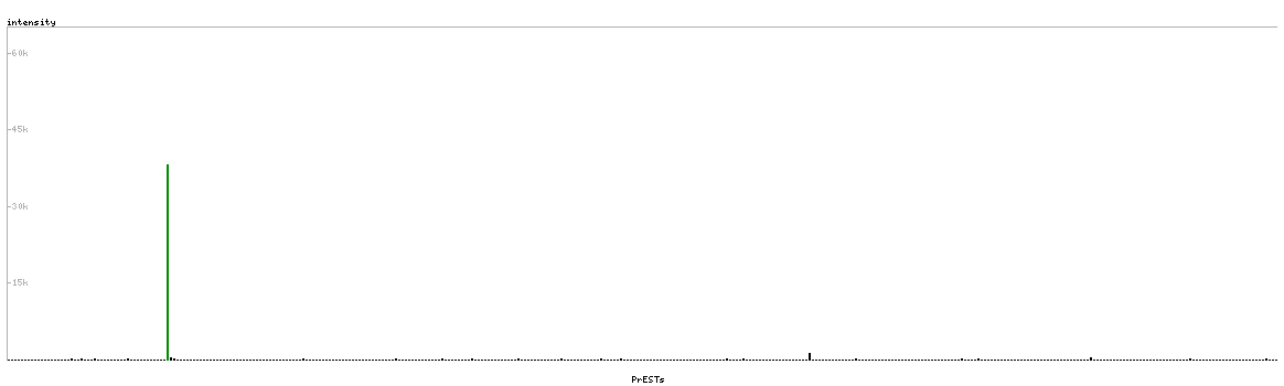 At the top of the view, the position of the antigen (identified by the corresponding HPA identifier) is shown as a green bar. A yellow triangle on the bar indicates a <100% sequence identity to the protein target.