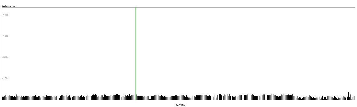 At the top of the view, the position of the antigen (identified by the corresponding HPA identifier) is shown as a green bar. A yellow triangle on the bar indicates a <100% sequence identity to the protein target.