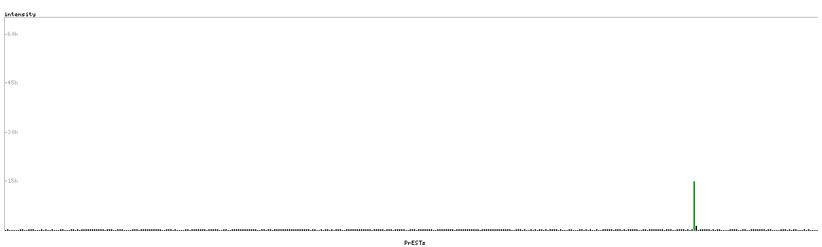 At the top of the view, the position of the antigen (identified by the corresponding HPA identifier) is shown as a green bar. A yellow triangle on the bar indicates a <100% sequence identity to the protein target.