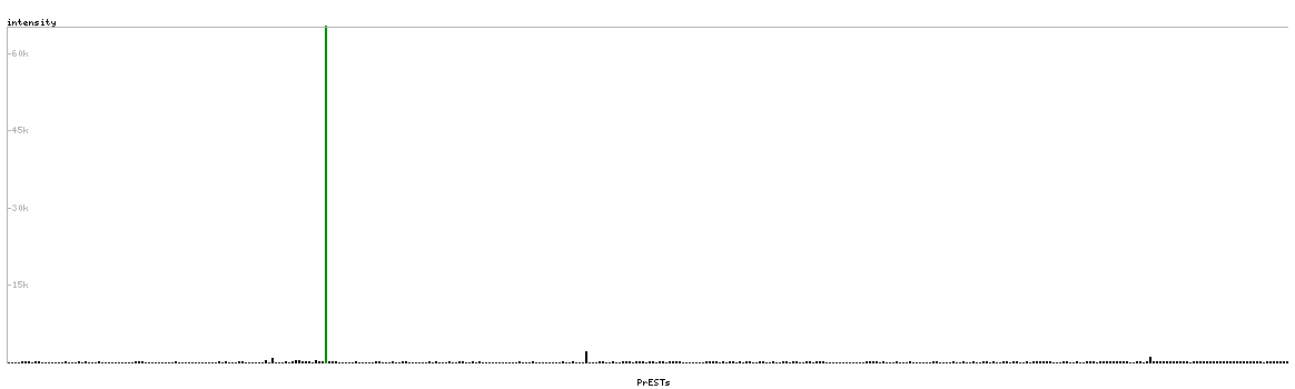 At the top of the view, the position of the antigen (identified by the corresponding HPA identifier) is shown as a green bar. A yellow triangle on the bar indicates a <100% sequence identity to the protein target.