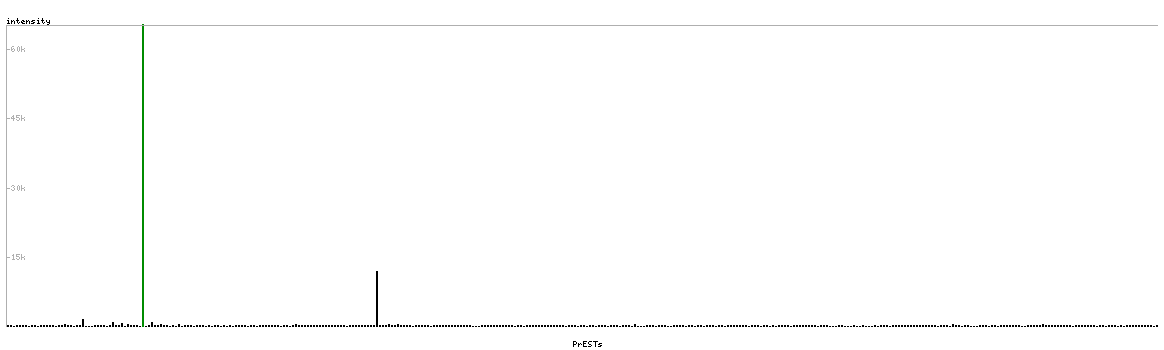 At the top of the view, the position of the antigen (identified by the corresponding HPA identifier) is shown as a green bar. A yellow triangle on the bar indicates a <100% sequence identity to the protein target.