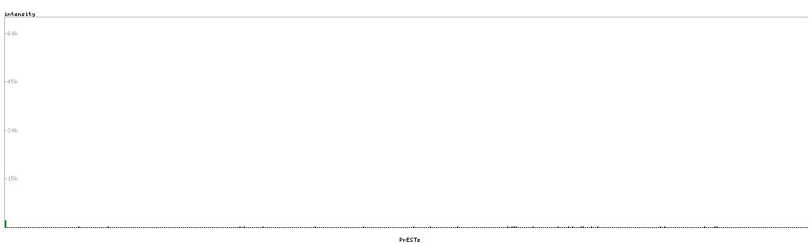 At the top of the view, the position of the antigen (identified by the corresponding HPA identifier) is shown as a green bar. A yellow triangle on the bar indicates a <100% sequence identity to the protein target.