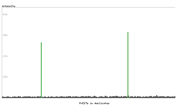 At the top of the view, the position of the antigen (identified by the corresponding HPA identifier) is shown as a green bar. A yellow triangle on the bar indicates a <100% sequence identity to the protein target.