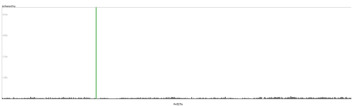 At the top of the view, the position of the antigen (identified by the corresponding HPA identifier) is shown as a green bar. A yellow triangle on the bar indicates a <100% sequence identity to the protein target.