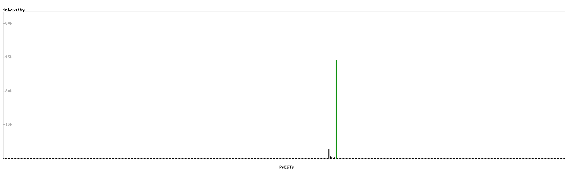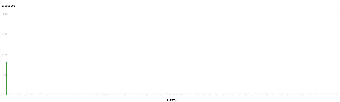 At the top of the view, the position of the antigen (identified by the corresponding HPA identifier) is shown as a green bar. A yellow triangle on the bar indicates a <100% sequence identity to the protein target.
